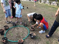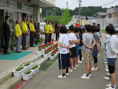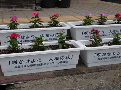 その後,人権の花贈呈式で頂いた3種類の花の苗をプランターに植えました。
