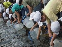 放流した稚魚は,きっと大きく育って,能登の海をさらに豊かにしてくれることでしょう。