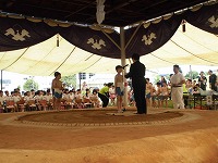 例年は雨の中の実施になる校内相撲大会ですが,今年は雨にあたることなく盛り上がった大会になりました。