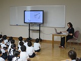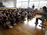 続いて,学校司書の山際先生が「松谷みよこ作~私のいもうと」の絵本の読み聞かせをして下さいました。子どもたちは真剣な表情で読み聞かせに耳を傾けていました。