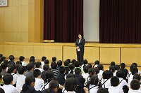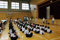 体育館で開かれた開会式では,校長先生から「自分自身に勝つ」,「頑張っている友達を応援する」ことの大切さについてお話がありました。