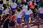 子供たちは,苦しいながらも沿道から聞こえるたくさんの声援に励まされながら,自分の限界まで走ることができました。