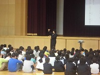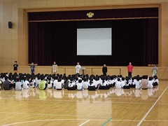 2017年6月7日 13時51分 今月の全校集会では,5年生の発表がありました。 5年生は,「國學院大學の杉田先生の言葉」と「人の幸せ」を全校生徒に伝えました。