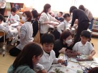11月4日、1年生は図工の時間に親子でリース作りに挑戦しました。自分達で育てた朝顔の蔓を使って、親子で話をしながら一生懸命作りました。ご協力いただきました保護者の皆様、本当にありがとうございました。