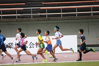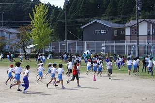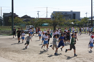 さわやかな秋晴れの下,子ども達は運動場を一生懸命走っています。