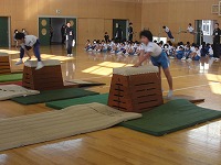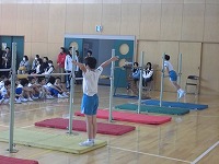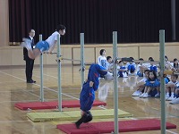 学校公開のこの日,3年生と4年生は,マット運動,跳び箱,鉄ぼうを披露しました。 日ごろの練習の成果をきれいに発揮できました。