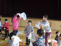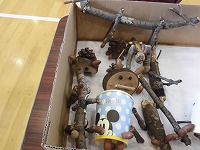 1・2年生が,体育館にかわいらしいお店やさんを開きました。 まつぼっくりのクリスマスツリーやどんぐりのコマ,ペットボトルを工夫したボーリング場や,ダンボールで作った的当てゲームコーナーなど,どこのお店も大人気です。 「いらっしゃい! いらっしゃい! 楽しいよ!!」 の声にさそわれて,たくさんの子供たちがお店にならんでいましたよ。