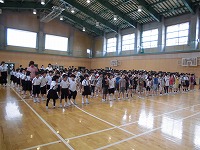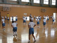 運動会に向けてダンスの練習をしている1・2年生のようすです。 体育館内は風が通り,いつもよりは涼しく感じられますが,熱中症には十分注意して,職員一同指導しております。 子供たちは,ピョンピョンと楽しそうに,そして,一生懸命練習しています。 当日をどうぞ楽しみにしていて下さい。