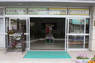 児童玄関に穴水小学校の子どもたちが「こんな子に育って欲しい」という願いを込めて,5つのスローガンを掲示しました。毎日見て,常に意識して欲しいと思います。