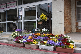 今,玄関のプランターには,校務員さんのお世話で,パンジーやオンファロデス,サクラソウなど色とりどりのきれいな花が咲いています。是非,一度足を運んで見て下さい。