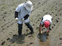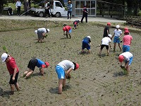 5年生が田植えの体験をしました。 田んぼの感触はどうだったでしょう? 秋にはおいしいお米が採れますね。