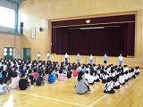 4限目に行われた全校集会の様子です。 まずはじめに,各委員会による今月のめあてについての説明がありました。 美化委員会は,正しいぞうきんがけのしかたを全校児童に見せてくれました。 5年生による詩の朗読では,「古文」に挑戦してくれました。 昔の言葉で書かれた古文は,意味も言い方も難しいのに,大きな声で立派に発表できました。 校長先生のお話では,「目と耳と心で聴くこと」の「心で聴く」の意味を教えていただきました。「心で聴く」とは,話している人の言葉を聴いて,「へぇ」とか「なるほど」など,心で感じて聴くことです。 それは,話している人に対して敬意を払うことなのです。