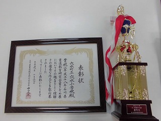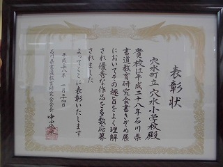 石川県書道教育研究所より、表彰状とトロフィーをいただきました。