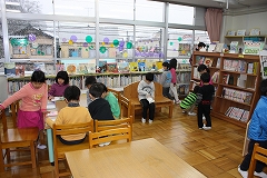 2月9日(火),平和こども園の年長さんが体験入学に訪れました。1年生の体育の授業,2年生の算数,図工を参観したあと,保健室や図書館も見学しました。図書館では図書支援員の先生の読み聞かせもありました。