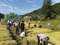 24日、5年生は親子で稲刈り体験をしました。5月に植えてから半年。親子で大きく実った稲を刈りました。最初は慣れない様子でしたが、徐々に慣れ、あっという間に稲刈りが終わりました。できたお米は、親子で炊飯して食べます。楽しみですね。これまでお世話いただいた下唐川の皆様、本当にありがとうございました。
