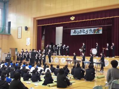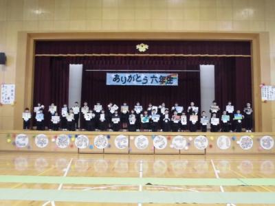 3月14日、「6年生を送る会」を開催しました。今年のスローガンは、「6年生に届け たくさんのありがとう」です。当日はどの学年も工夫したステージで、これまで頑張ってくれた6年生にたくさんのありがとうを伝えることができたと思います。最後はさすが6年生。素晴らしい合奏や下級生への温かいメッセージは決して忘れません。感動の送る会をありがとう!