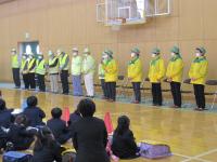 今年も児童の登下校の安全のためにご協力よろしくお願いします。対面式の最後に、6年生が児童代表を代表して、日頃の感謝とお礼の言葉を伝えました。