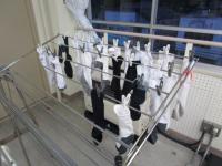 6年生は、家庭科の「衣服の手入れ」の学習で手洗い実習をしました。洗面器やバケツに水をはり、洗剤を入れて「もみ洗い」や「押し洗い」をしながら、初めての手洗いに挑戦。きれいになった靴下をうれしそうに干している姿が印象的でした。靴下のように小さなものは、手洗いでもきれいになることを実感したようです。家でも実践してほしいですね。
