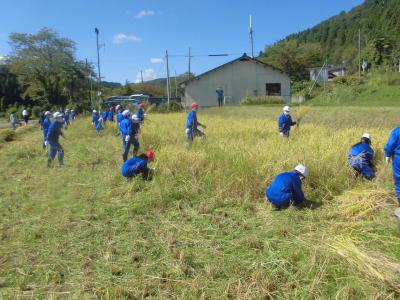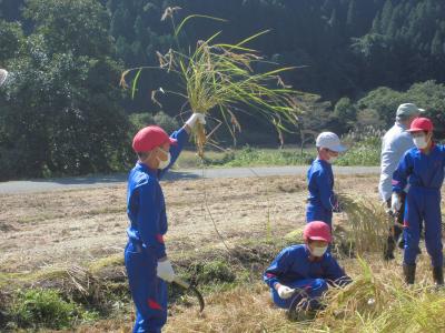 9月29日、5年生は、5月に田植えをした田んぼの稲刈りを行いました。地域の方々から刈り方を教わると、初めてとは思えないくらい手際よく成長した稲を刈っていきました。子供達からは、収穫の喜びだけでなく、米作りの大変さを知り、お世話していただいた地域の方々に感謝して食べたいという声がたくさんありました。