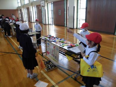 25日、1・2年生は、秋祭りを体育館で開催しました。工夫したゲームやお店役の子ども達の熱心な声かけがあり、みんなで楽しい時間を過ごすことができました。また、2年生の運営や司会を一生懸命にこなす姿に、先輩としての成長を感じる時間でもありました。
