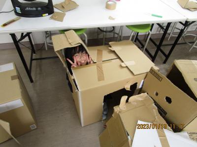 段ボールに入ってみると! 2023年1月17日 08時11分 2年生は、図工の時間に段ボールを使った制作活動に取り組みました。自由に段ボールに入り、思いついたことを工夫して作る子ども達の笑顔が印象的な時間でした。 いいね