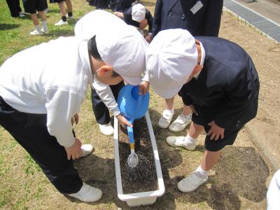 2年生は生活科でラディッシュを植えました。手をかけ、成長を観察しながらたくさんのことを学んでくれること願っています。頑張れ、2年生!