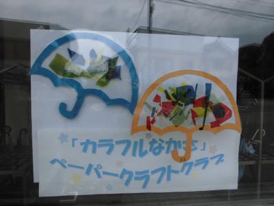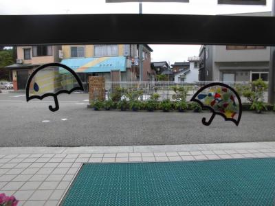 玄関のかわいい傘のペーパークラフト。これはペーパークラフトクラブで作ったものです。雨が続く梅雨の時期ですが、この傘のおかげで、雨の日が少しでも楽しくなるとうれしいですね。ペーパークラフトクラブの皆さん、ありがとう!