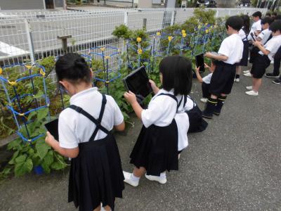 撮ったよ! 2023年6月28日 17時31分 今日、1年生は初めてパソコンで育てている朝顔の写真を撮りました。まだ使うことに慣れない一年生は、「写真撮ったよ、見て、見て!」と大喜びでした。これからも大切に授業で使ってくれると嬉しいです。 いいね