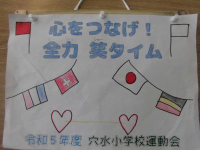 運動会スローガン決まる 2023年9月7日 09時21分 令和5年度の運動会スローガンが決まり、6年生が各学級と職員室にスローガンのポスターを届けてくれました。思いを込めたスローガンのもと、あと一週間、みんなで力を合わせてがんばってほしいと思います。 いいね