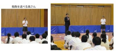 髙さんは「目標の35mを投げられるよう試合に向けて調子を上げていきたいです。」と述べ、島崎校長先生は「今まで練習してきたルーティンを守り、1投入魂で競技に臨んで下さい。日本のやり投げのエース、北口榛花選手のように笑顔で助走の一歩を踏み出せるよう願っています。自己ベストを出せるよう、全校生徒で応援しています。」と励ましの言葉を述べました。