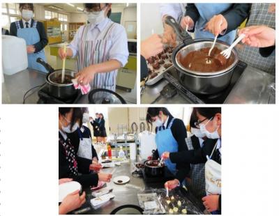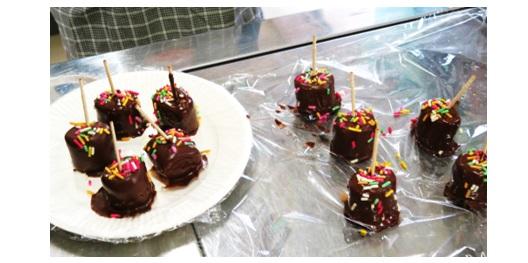 4月17日(木)、家庭部でチョコバナナ作りを行いました。チョコレートを湯煎で溶かし、スライスしたバナナにコーティングし、アラザンなどでデコレーションしていきました。