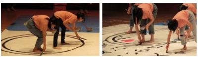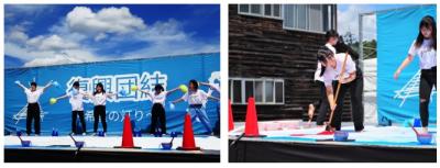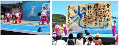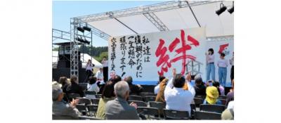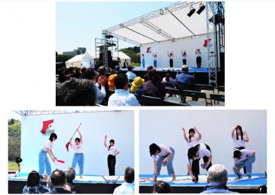 生徒達は「絆」の文字を大きく描き、復興への意気込みを、書道とダンスで生き生きと表現しました。観客の方々から大きな拍手をいただき、イベントを華やかに盛り上げてくれました。