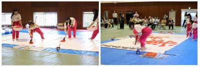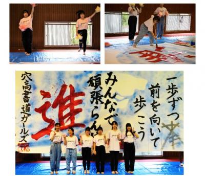 本校書道ガールズがステージイベントに出演し、書道パフォーマンスを披露しました。