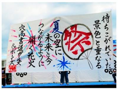 7月22日(土)、穴水町で開催された長谷部まつりのオープニングで本校書道ガールズ&ボーイズが書道パフォーマンスを披露しました。