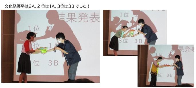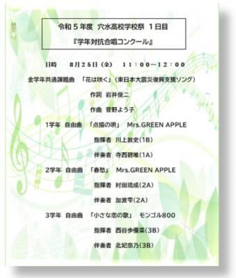 1日目の内容は合唱コンクールで、学年毎に夏休み中に練習した成果を披露しました。最優秀賞は2年学年団でした。どの学年もそれぞれの持ち味が出た良い合唱でした。
