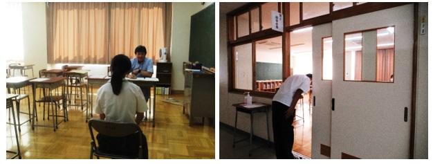 本校職員が面接官となり、志望動機や自己PR、高校生活などについて質問したり、面接の際の態度や礼法、話し方やその内容について改善点などアドバイスしたりしました。