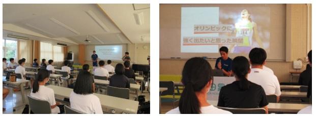 生徒達からは「試合前には何を考えていますか」「きつい練習に耐えるためのモチベーションを上げる方法を教えて下さい」「体作りで一番気をつけていることは何ですか」などたくさんの質問が出され、興味関心の高さがうかがえました。