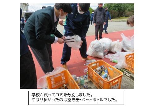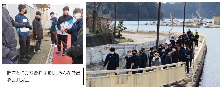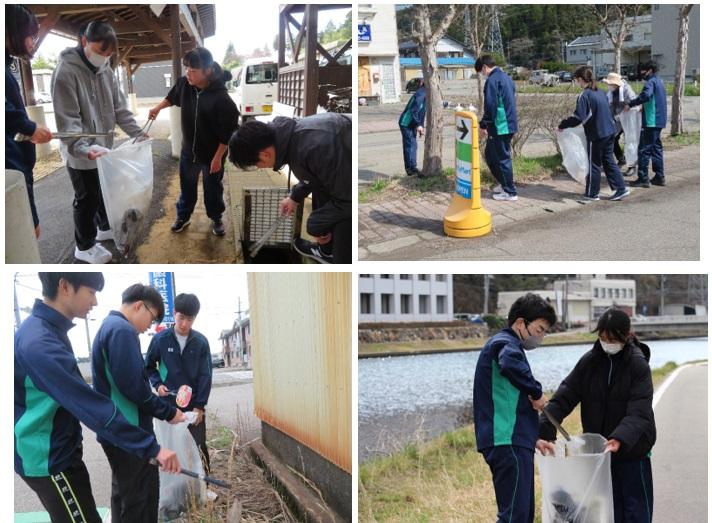 昨年度は地震の影響で実施出来ませんでしたが、今年度は本校生徒と教職員約65名が部ごとに分かれ、穴水町内やのと鉄道駅周辺のゴミ拾いを行いました。町民の皆さんから励ましの言葉をいただきながら約2時間一生懸命清掃に励みました。