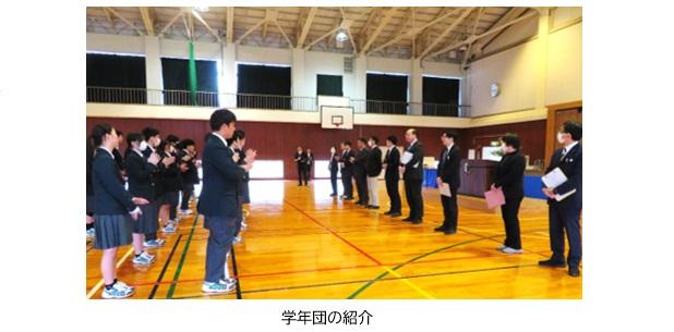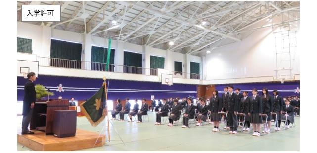 入学式の後には対面式が行われ、2,3年生と挨拶を交わしました。生徒会長の今牛日菜香さんが歓迎の言葉を述べ、これからの高校生活を充実したものにしていけるよう先輩として手助けしていくことを約束しました。また、新入生代表として寺西一真さんが「高校では勉強と部活動の両立や、進路の選択などの大きな決定がありますが、仲間と共に様々なことに挑戦していき、心身共に高校生として成長していきたいと思っています。」と述べました。
