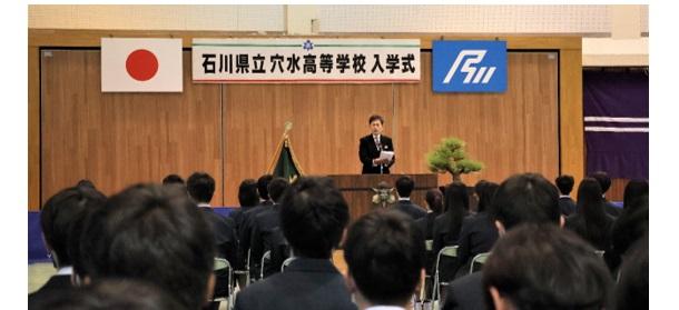 その後、新入生代表の西田昌白さんが「私たちが育った地域に貢献し、能登半島地震からの復興に寄与できる人間になれるよう努力します。本校で卒業を迎えるその日まで、穴水高校生としての自覚と責任を持ち、共に励まし合い高め合う仲間として努力し学ぶことをここに誓います。」と力強く宣誓しました。