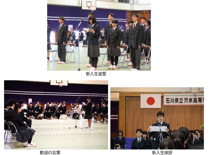 4月10日(木)、新入生歓迎会が行われました。前年度生徒会長の今牛日菜香さんが歓迎の挨拶を述べた後、生徒会執行部から穴水高校の行事や学校生活について説明がありました。