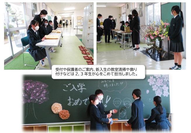 島崎校長は式辞で、新入生が震災後の厳しい環境下で中学校最後の学年を送ったこと、多くの試練を乗り越えて今この場に立っていることを思い、これまでの努力をねぎらいました。そして「本校の現状は、震災で受けた被害のハード面では復旧はほとんど進んでいません。しかし、皆さんが入学してからの学習や部活動において、「環境さえ整えばもっと勉強(練習)できるのに。もっと良い成績が出せるのに。」などといったできない理由を考えるのではなく、「どうすればできるかを考える」ということを高校生活の目標にして下さい。「これはできない」と弱音を吐くのではなく、「こうすればできる」と考えることで、すぐにはできないことがあっても、一歩ずつ前に進むことができます。皆さん の先輩方は、この環境への不満を口にすることなく、元気に前を向いて高校生活を送っています。新入生のみなさんも、変えることができる将来に向け、一生懸命、後悔なく高校生活を送って下さい。」と励ましの言葉を述べられました。(→入学式式辞.pdf)