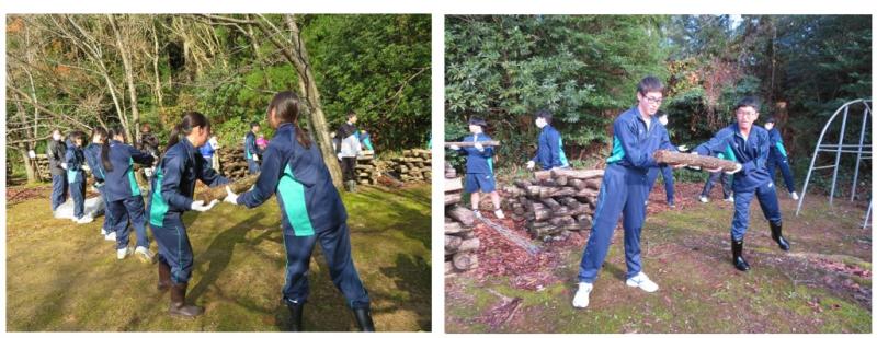 12月10日(水)、2年生が5月に植菌したシイタケのほだ木をハウスに入室するシイタケハウス入室作業を行いました。
