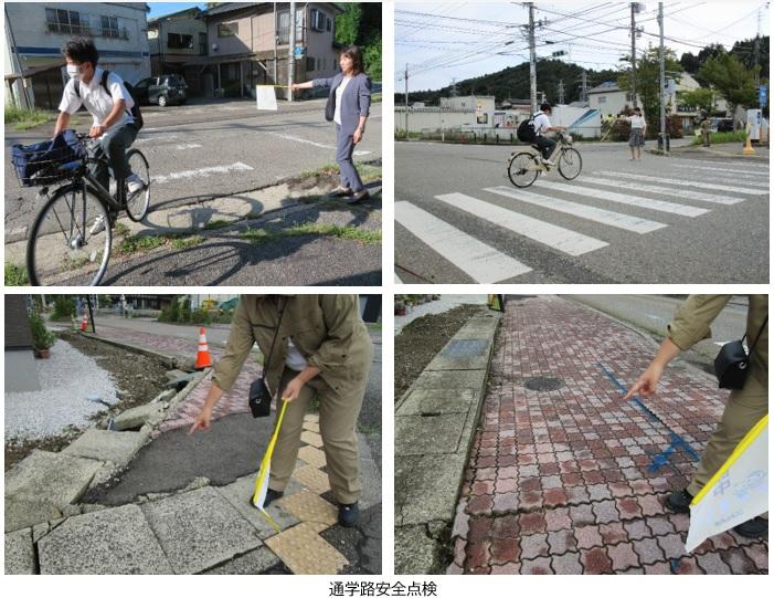 今回は保護者による通学路の安全点検も実施しました。地盤が傾いた箇所や段差のある場所もあり、保護者目線でしっかりとチェックしていただきました。