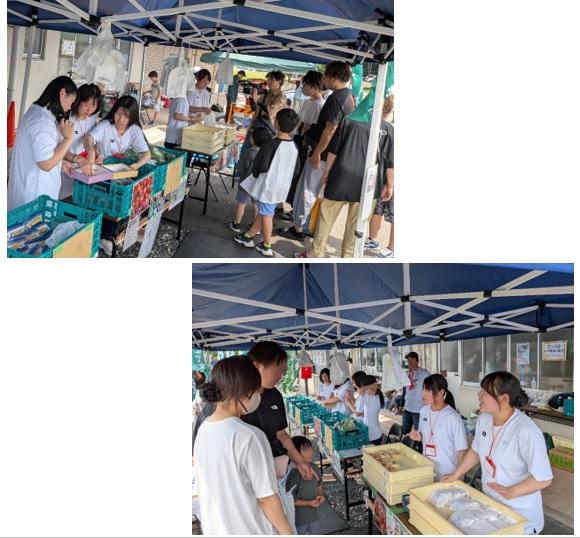 生徒達はお客さん達に元気よく挨拶をし、H&M特製の「のと115」入り「おやき風パン」や地元夏野菜などの販売を行いました。