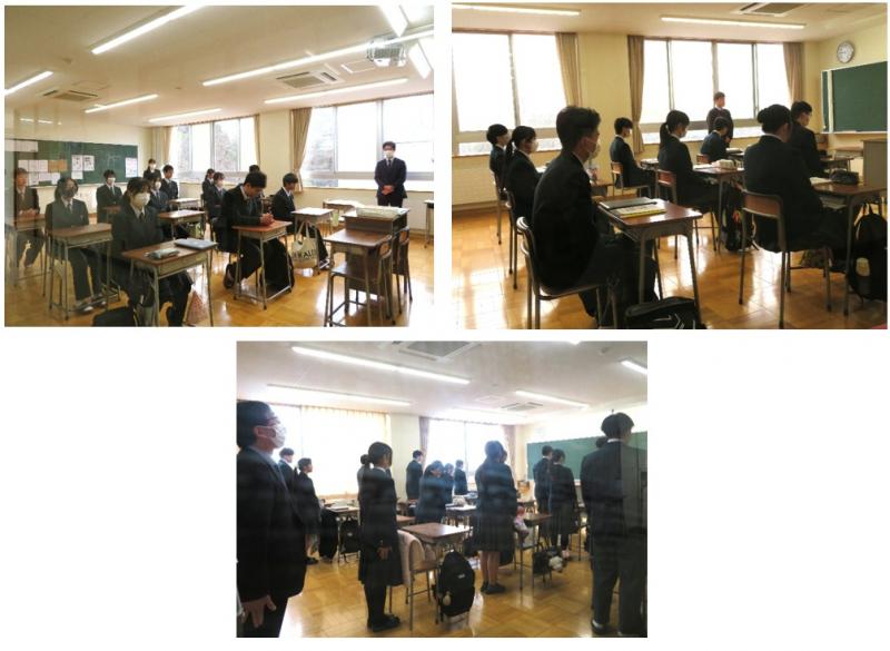 島崎康一校長は、能登半島地震から2年が経過したことについて言及し「生徒の皆さんの中にも仮設住宅での生活が続いている人もいます。2年が経過しても、まだまだ震災前の状態に戻ったわけではありません。「アニバーサリー反応」による緊張や不安、眠れない、いらいらする、勉強に集中できないなどといったことがあるかもしれません。そんなときは、これは誰にでも起こりうることだと知っておいてください。そして、一人で悩まず、友人や家族、先生に伝えて下さい。皆で乗り越えていきましょう。」と励ましました。
