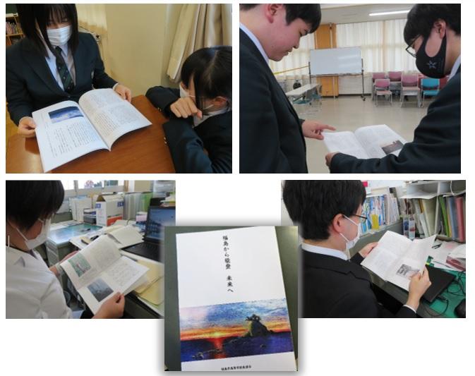 東日本大震災や原発事故、その後の風評被害に苦しんできた福島の方々から、それぞれの体験に基づいた経験談や、今回の能登半島地震で未だ復興途上にある能登の人々に思いを馳せた温かい言葉などが綴られており、生徒・教職員一同で拝読させていただきました。