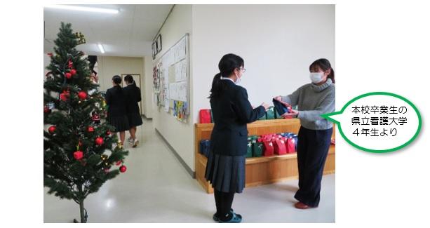12月20日(金)、石川県立看護大学より本校生徒全員にクリスマスプレゼントが配られました。