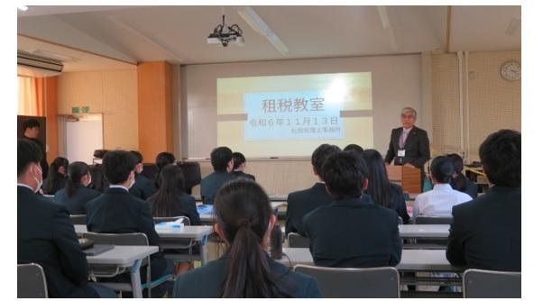 2024年11月14日 14時34分毎年11月11日(月)~17日(日)の間は税を考える週間となっています。それに合わせて11月13日(水)、2年生を対象に租税教室が行われました。