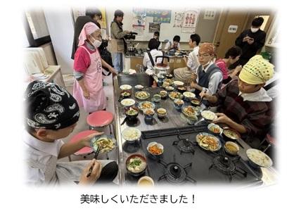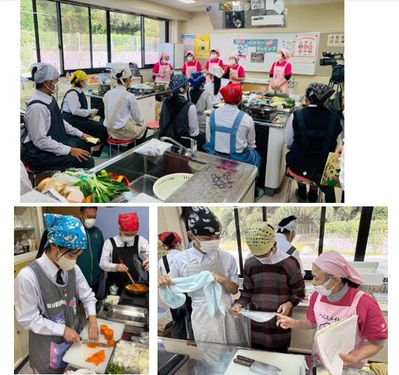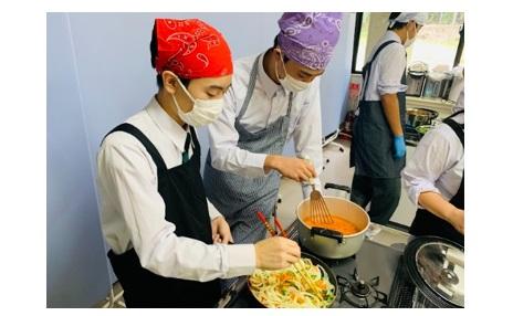 講義の後は調理実習を行いました。地元の食材を使った高校生にも作りやすいメニューで、生徒達は野菜の切り方や味付けをする際のコツなどを教えていただきながらグループ毎に楽しく活動しました。